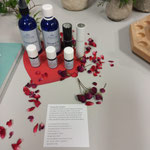 Einzelne (Kost/Riech) Proben von ätherischen Ölen, Körperölen, Balsamen oder nativen Pflanzenölen, sowie Tipps und weitere Infos erwarten Sie. Info-Blätter zu den Themen liegen für Sie auf.