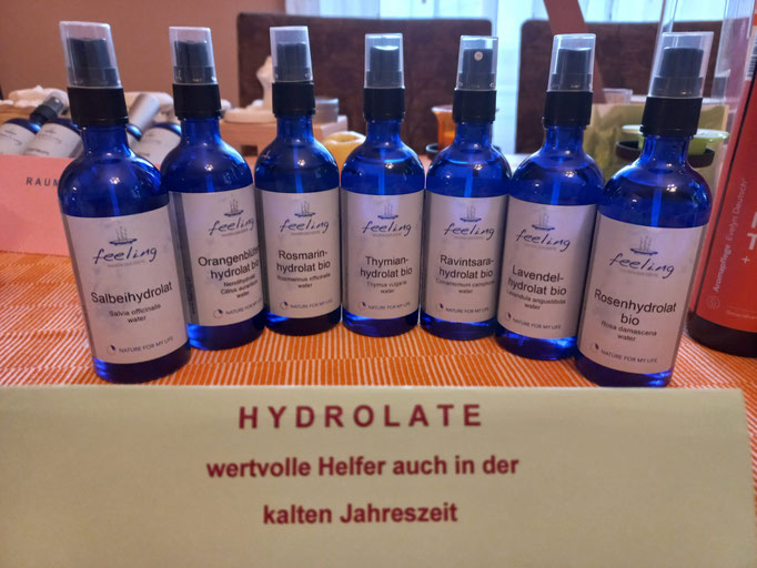 Mit Hydrolaten, wie z.b. Orangenblüten- Rosen- oder Pfefferminz-Hydrolatt als Bodyspray oder Gesichtsspray können sie sich große Erleichterung verschaffen.